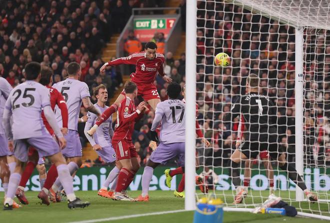 如果說(shuō)熱刺的悲劇源于自身的失控,那么利物浦的勝利則充滿了僥幸。手握11打10、最后11打9的絕對(duì)人數(shù)優(yōu)勢(shì),紅軍不僅沒能掌控場(chǎng)面,反而被9人熱刺逼得在補(bǔ)時(shí)最后5分鐘全面退防。進(jìn)攻端,斯洛特構(gòu)想的“高低結(jié)合、地面滲透”戰(zhàn)術(shù)徹底失靈,由于薩拉赫歸隊(duì)缺席、加克波養(yǎng)傷,邊路缺少爆點(diǎn)的紅軍只能機(jī)械地傳導(dǎo),效率低下的地面滲透在熱刺5后衛(wèi)體系面前毫無(wú)辦法。若不是?;倏俗プ「チ峙畹奶魝黝^球破門,若不是維爾茨終于實(shí)現(xiàn)英超首助(本賽季聯(lián)賽首個(gè)助攻),這場(chǎng)比賽的結(jié)果或許會(huì)徹底反轉(zhuǎn)。