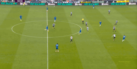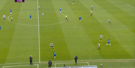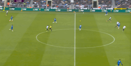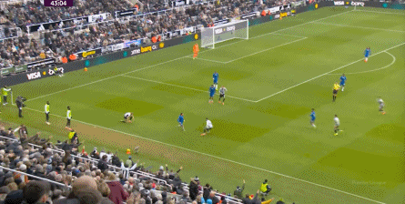 在此之后,切爾西又獲得了一次左側(cè)射門的機(jī)會(huì),過(guò)程中你可以看到,紐卡斯?fàn)柕母叽蠛笮l(wèi)們已經(jīng)控制不住切爾西的鋒線活動(dòng)了: